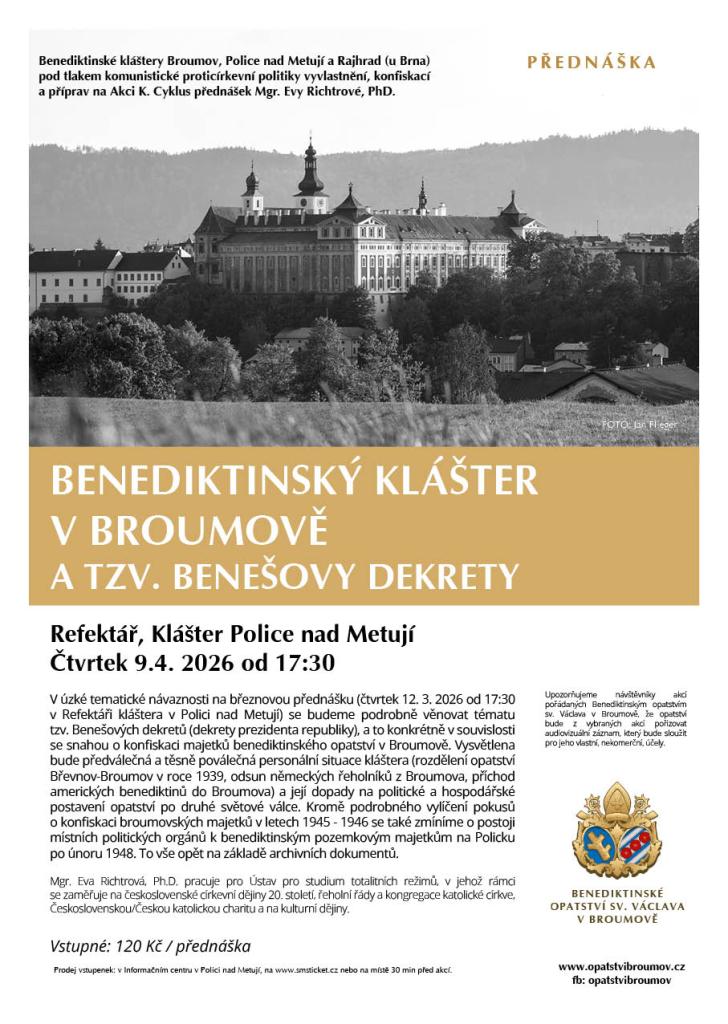 Přednáška "Benediktinský klášter v Broumově a tzv. Benešovy dekrety"